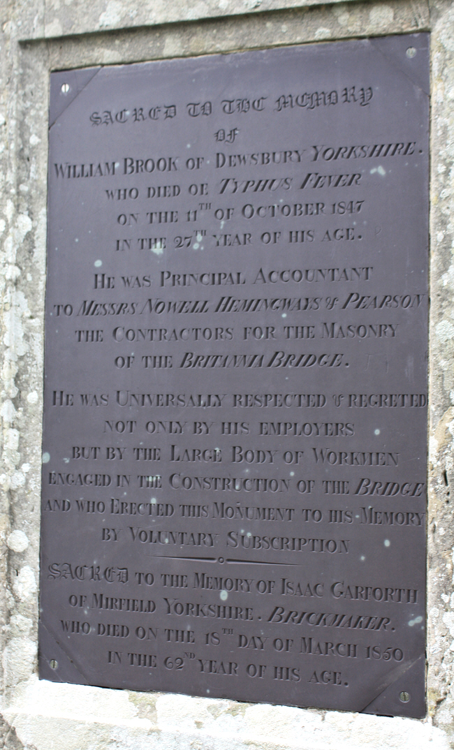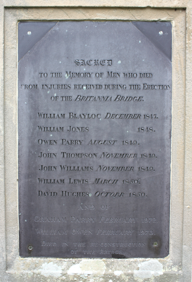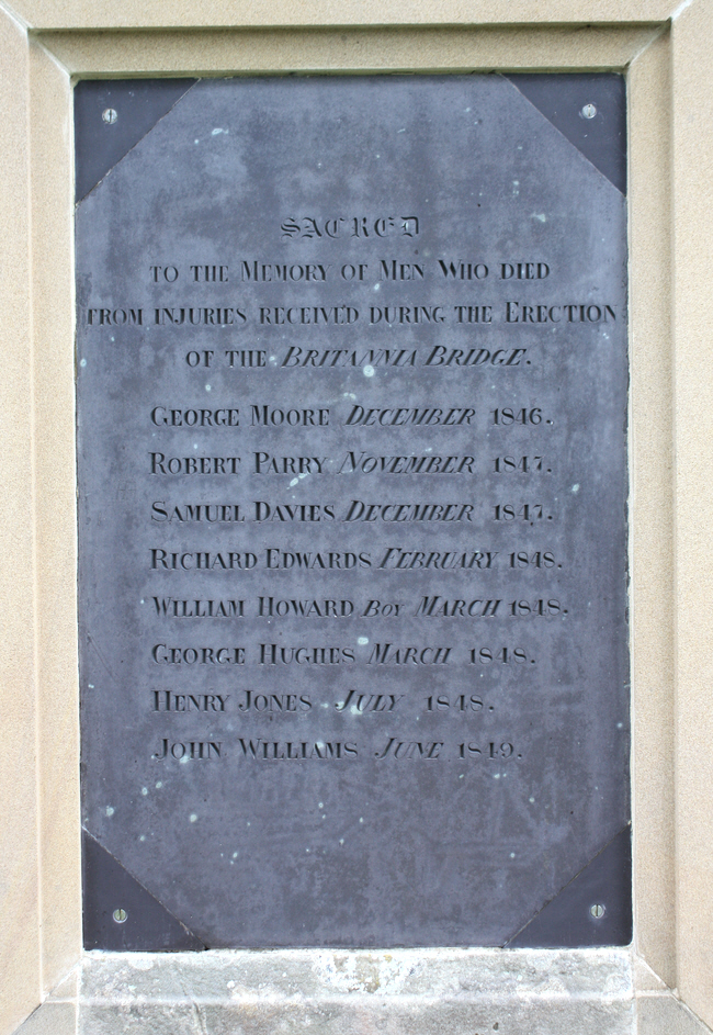 The churchyard contains a memorial to those who lost their lives in the construction of the Britannia Bridge in the 19th century and its subsequent reconstruction in the 1970s.